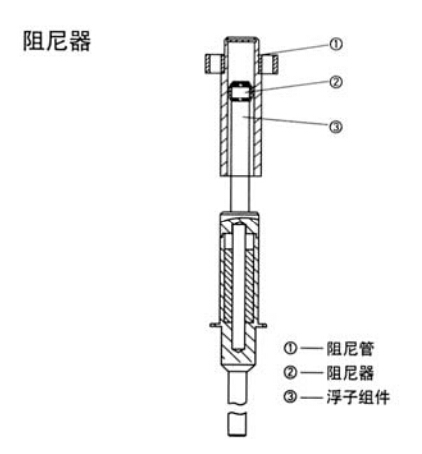 其实,各种流量计在安装使用时都强调前后直管段距离,一般是前10后5,如超声波流量计,有些流量计甚至前端要达到30倍管径距离,主要是为避开上游的调节阀、弯管等扰乱介质流态的设备,使流量计能在一个流态相对稳定的测量点进行流量测量,以获得准确的流量数据。在使用垂直安装金属管浮子流量计时也一样,如果流量计的入口流量(压力)不稳定,尤其是对于气体的测量,为保证仪表的测量精度和延长仪表的使用寿命,设计了阻尼器结构,它的结构如图所示。